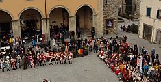 CASENTINO. A Bibbiena in piazza Tarlati vettovaglie, rime, canti, bandiere ed il fascino del fuoco
